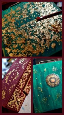 Seit langer Zeit gestalte ich aus alten Koffern, Kisten, Schachteln und Schatullen kleine SCHATZTRUHEN, die weit mehr sind als nur Aufbewahrungsboxen. Jede einzelne habe ich mit viel Liebe verziert – mit filigranen Ornamenten und Blattgold geschmückt, manchmal umhüllt von samtweichen Stoffen oder zarten Spitzen. Jede Schachtel ist ein Ausdruck meiner Bewunderung für die Natur, für schöne Erinnerungen und das Bewahren kostbarer Dinge.