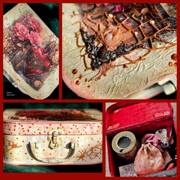 Ich habe lange überlegt, ob ich dieses Herzensprojekt überhaut teilen möchte. Dies zu teilen bedeutet auch, daß so manch einer ein Geschäft daraus machen möchte und die kleinen Unikate dann der Vergangenheit angehören. Für mich sind diese Schatztruhen mehr als nur Behältnisse und schon gar kein Geschäft – sie sind kleine Tempel für daß, das mir wirklich wertvoll ist, handgemachte kleine Kunstwerke, in denen ich meine Schätze bewahren kann.