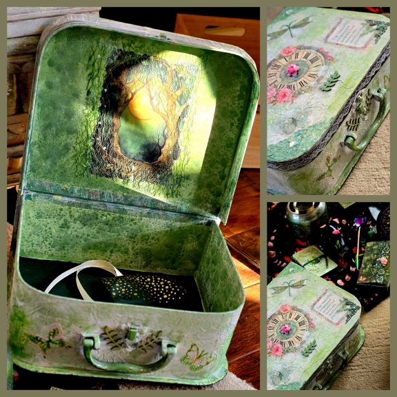 Ab und an fertige ich solche Schatztruhen an ohne einen Verwendung für sie zu haben, oder ich nehme sie mit wenn ich eine Vorführung oder Markt habe. Sehr oft werden diese dann so sehr bewundert, daß ich sie manchmal auch veräussere. Wenn dir die Zeit oder die Muße fehlt, selbst zu gestalten schau gerne mal dort oder beim nächsten Markt vorbei.