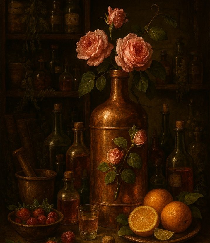 Später kamen die Alchemisten – Bewahrer des Verborgenen, Suchende nach dem, was den Stoff in Geist verwandelt. Sie experimentierten mit Ton, Glas, Feuer. Sie ließen Pflanzen im heißen Atem des Wassers ihr Innerstes preisgeben und fingen den flüchtigen Hauch in Gefäßen ein. Es war weniger Wissenschaft als Kunst, weniger Technik als eine Form von Alchemie: das Veredeln des Irdischen zum Ätherischen.