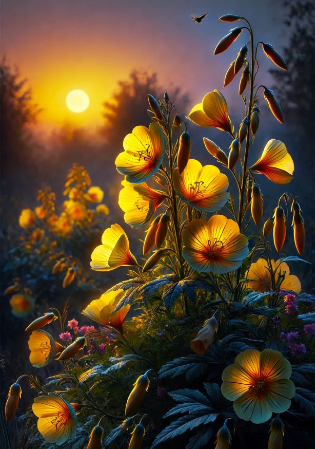 In der stillen Dämmerung, wenn der Tag dem Abend weicht, entfaltet die Nachtkerze ihren geheimnisvollen Zauber.