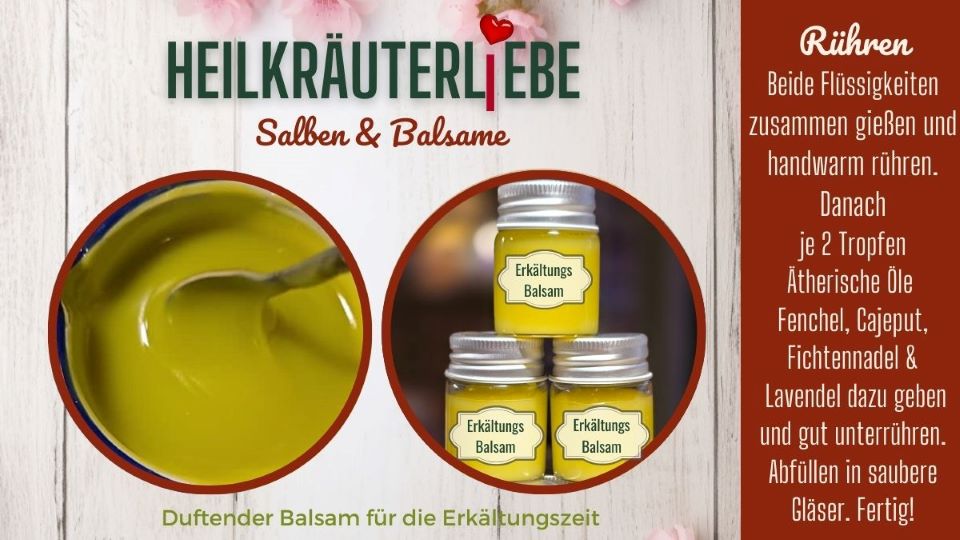 Wenn der Herbstwind weht und die Luft klar und frisch wird, ist es Zeit, einen Erkältungsbalsam selbst herzustellen. Dieser Balsam mit natürlichen Zutaten, voll wärmender ätherischer Öle und heilender Kräuter, ist ein duftender Begleiter in Erkältungszeiten. Ein DIY-Projekt, das die Sinne belebt und die Atemwege öffnet.